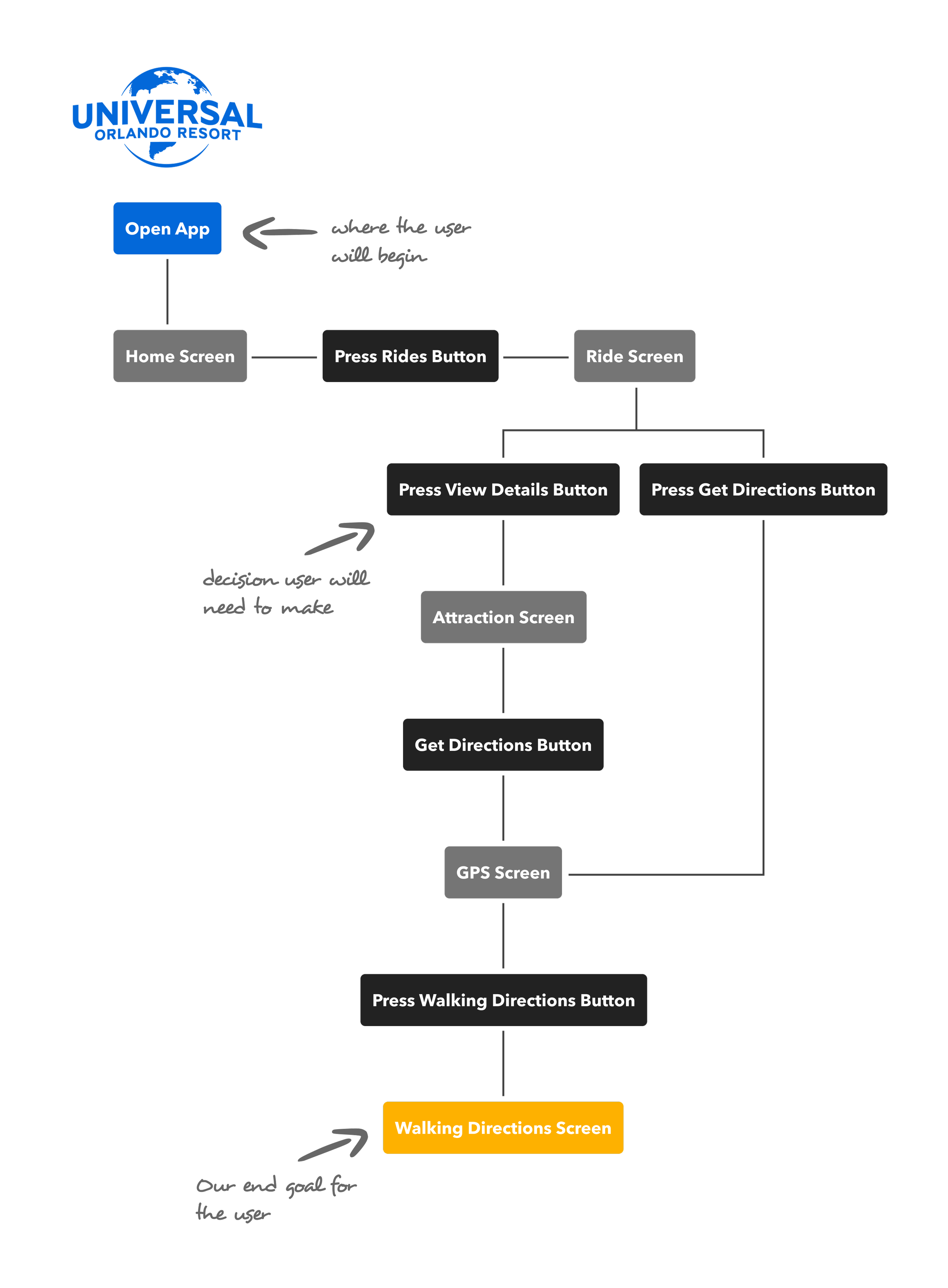 A simple navigation feature designed to help Universal Orlando Resort Guests get from point A to point B without confusion.
